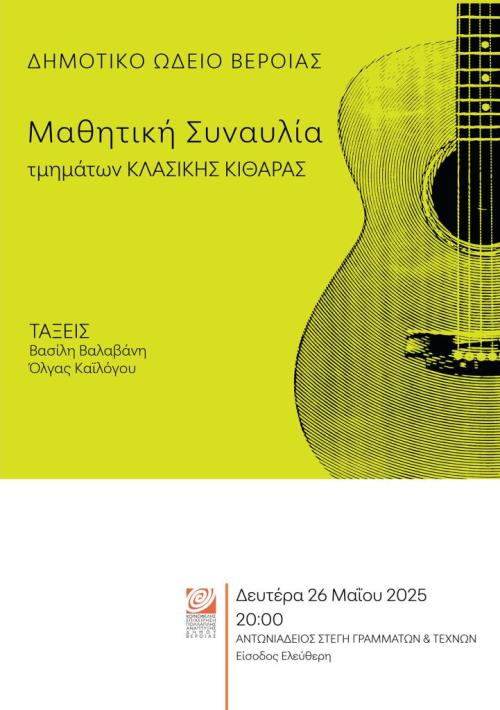 Παραδοσιακές μελωδίες και έργα λόγια μουσικής για κλασσική κιθάρα, που παρουσίασαν μαθητές του Δημοτικού Ωδείου του ΚΕΠΑ Δήμου Βέροιας, των τμημάτων κιθάρας του Βασίλη Βαλαβάνη και της Όλγας Καϊλόγλου.
