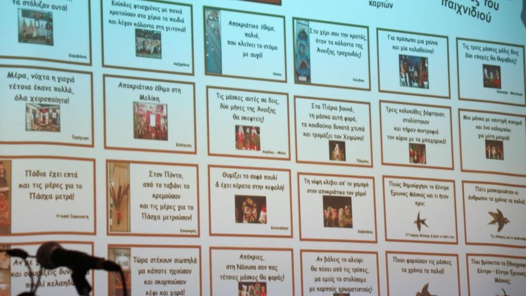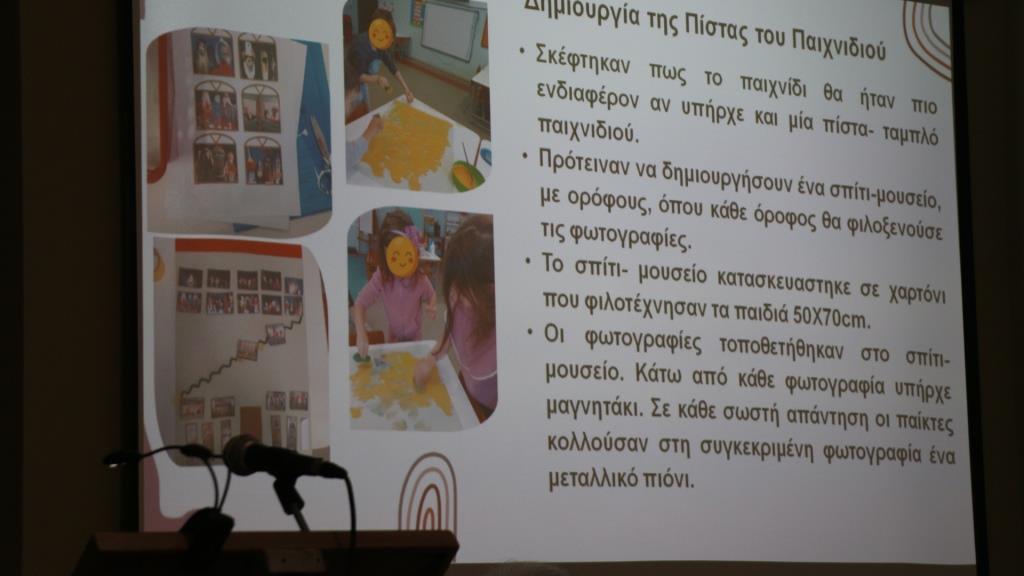 Η εισήγηση των Γιάγκογλου Δήμητρας, Γιάγκογλου Ευθυμίας, Τεζεράκη Κυριακής, Τζίμα Αγορίτσας, νηπιαγωγών, ήταν “Το Εθνογραφικό Κέντρο Γιώργη Μελίκη-Κέντρο Έρευνας Μάσκας” ως πηγή εκπαιδευτικής δημιουργικότητας. Το παράδειγμα του 12ου Νηπιαγωγείου Βέροιας”.