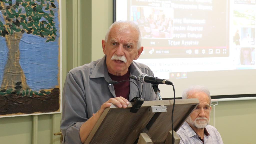 Πρώτος ο Ευάγγελος Αυδίκος, Ομότιμος Καθηγητής Πανεπιστημίου Θεσσαλίας ανέπτυξε την εισήγησή του “Σερφάροντας στο δάσος του εικονικού κόσμου με καπετάνιο την εκπαιδευτική διάσταση του λαϊκού πολιτισμού”. Συνεχάρη το έργο που επιτελείται στο Εθνογραφικό Κέντρο Γ. Μελίκη και διατύπωσε τη θέση του ότι απέναντι στην παιδοκεντρική αμηχανία της εποχής μας, ένα μουσείο μπορεί να αποτελέσει τη γέφυρα ανάμεσα στην εκπαιδευτική διαδικασία και τον λαϊκό πολιτισμό.