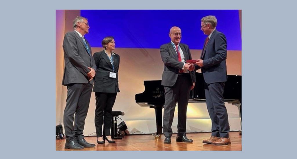 Παραλαβή του Μεταλλίου από τον πρόεδρο της Νευροχειρουργικής Εταιρείας Prof. Hans Clusmann