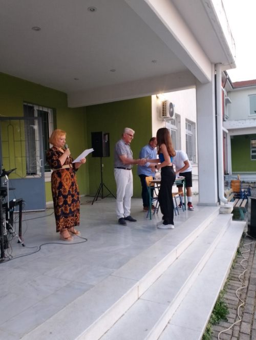 Λόγια από καρδιάς, χαμόγελα, συγκίνηση, ευχές, φωτογραφίες, χοροί συνέθεσαν την ατμόσφαιρα της γιορτής μαζί με τα γευστικά σουβλάκια -προσφορά του Συλλόγου Γονέων και Κηδεμόνων, που είχε την οργάνωση και την επιμέλεια όλης της γιορτής- και τη συνοδεία μουσικών οργάνων από τον μαθητή μας Λάζαρο Χατζηγεωργίου και τον πατέρα του.