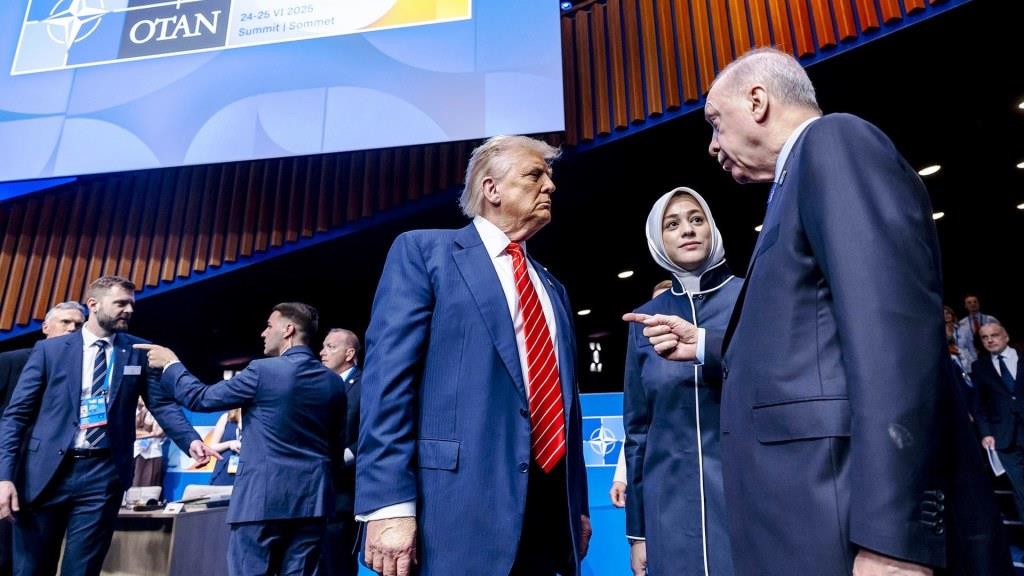 Την ίδια ώρα, ο Αμερικανός Πρόεδρος (μέσω του πρωτοκόλλου) φρόντισε να στείλει το μήνυμά του με την «οικογενειακή» φωτογραφία της συνόδου κορυφής του ΝΑΤΟ στη Χάγη. Σε αυτό το στιγμιότυπο βλέπουμε τον Ερντογάν δίπλα στον Τραμπ και τον Μητσοτάκη στα «ορεινά» κάπου «δεξιά και πάνω», ίσα – ίσα να χωρά στο κάδρο.