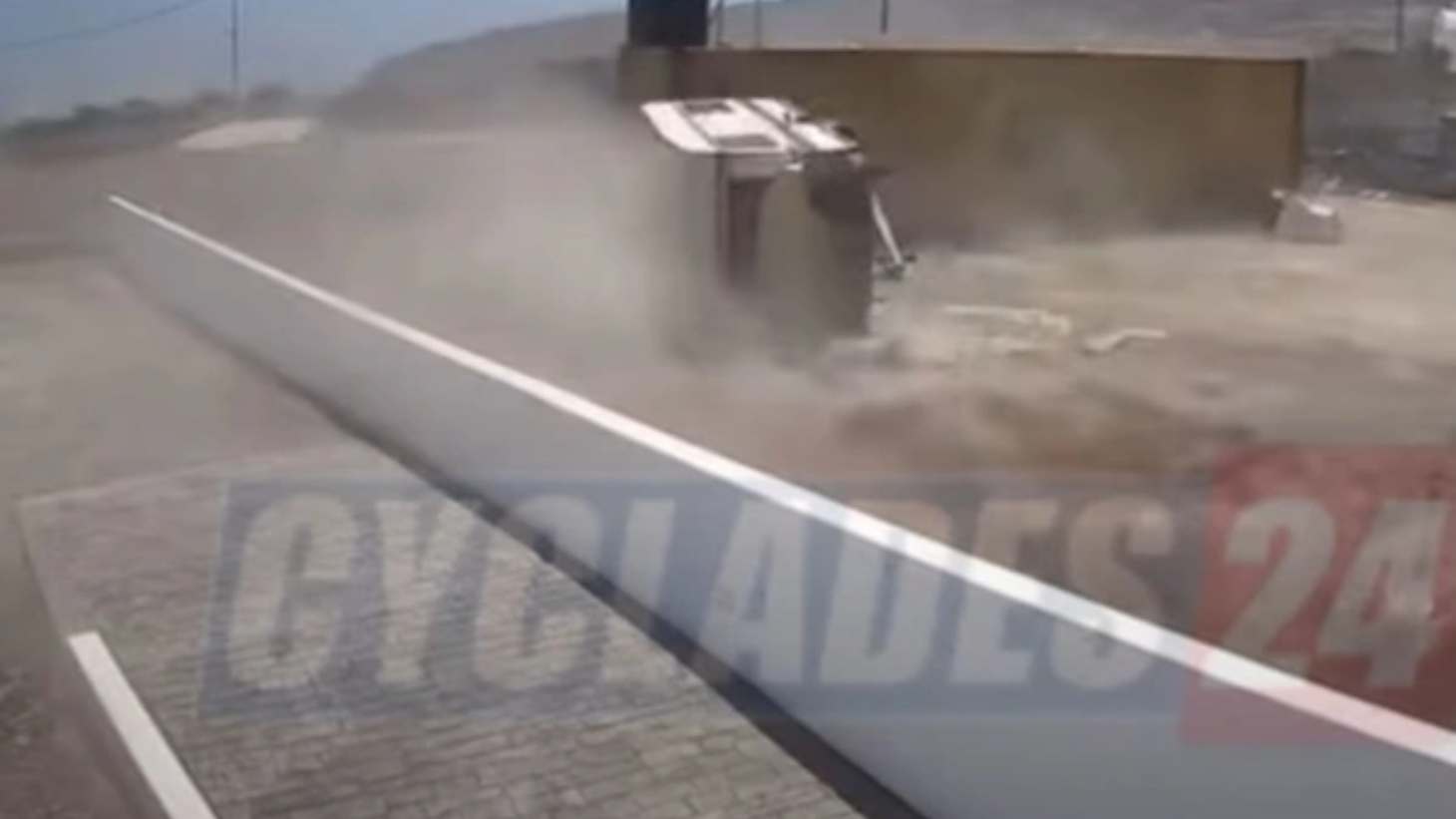 Σαντορίνη: Άνεμοι σήκωσαν στον αέρα τροχόσπιτο και το διέλυσαν – Απίστευτο video
