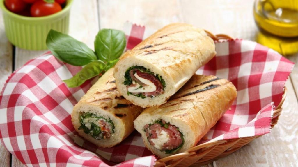 Μπαγκέτα γεμιστή με προσούτο, ρόκα και μοτσαρέλα