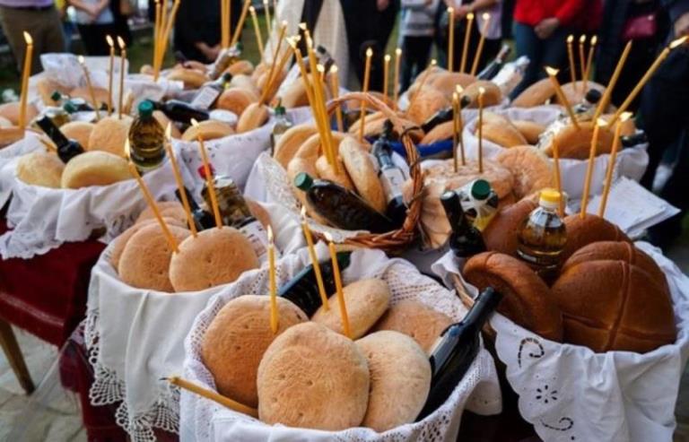 Μετά τον Μέγα Εσπερινό και ενώ ο ουρανός πάνω από τις οροσειρές που περιβάλλουν το Ξηρολίβαδο έπαιρνε τα κοκκινόχρυσα χρώματα της δύσης του ήλιου που έγερνε πίσω από το Ξηροβούνι, στον προαύλειο χώρο του Ιερού Ναού τελέστηκε Αρτοκλασία με το πλήθος των πιστών που κάλυπτε το ύψωμα του Προφήτη Ηλία, να συνοδεύει τον ιερέα που έψαλε το προσευχητάρι προς Την Θεοτόκο Παρθένο γύρω από το πλήθος των άρτων που προσέφεραν οι Ξηρολιβαδιώτες.
