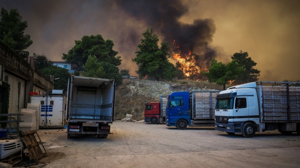 Από τη μεγάλη φωτιά κάηκε και ένα θερμοκήπιο, ενώ αυτή τη στιγμή καίγεται μεγάλη χοιροτροφική μονάδα.