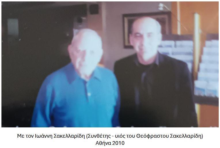 Συνεργαστήκαμε στην ίδρυση με τον Λέκκα με τον Μητρούση, με τον Μητσιά, με τον γιο του Θεόφραστου, τον Γιάννη τον Σακελλαρίδη, ο οποίος ζει στην Αμερική και που ήταν ο πιανίστας του Χατζιδάκι, όταν αυτός έγραφε έργα του εκεί. Άλλος συνιδρυτής ο μεγάλος πιανίστας Νίκος Αστρινίδης, που είχε κάνει και ενορχηστρώσεις έργων του Θεόφραστου για τη Λυρική Σκηνή.