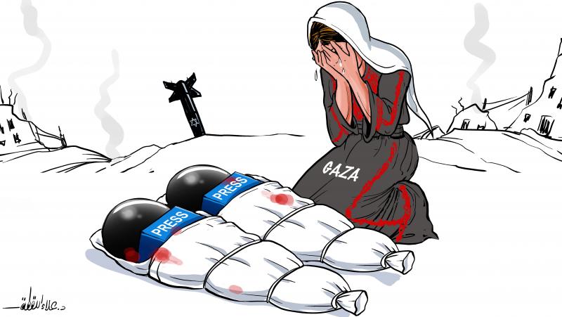Επτά σκίτσα στη μνήμη των νεκρών δημοσιογράφων από το διπλό δολοφονικό χτύπημα του Ισραήλ στο νοσοκομείο Νάσερ της Γάζας