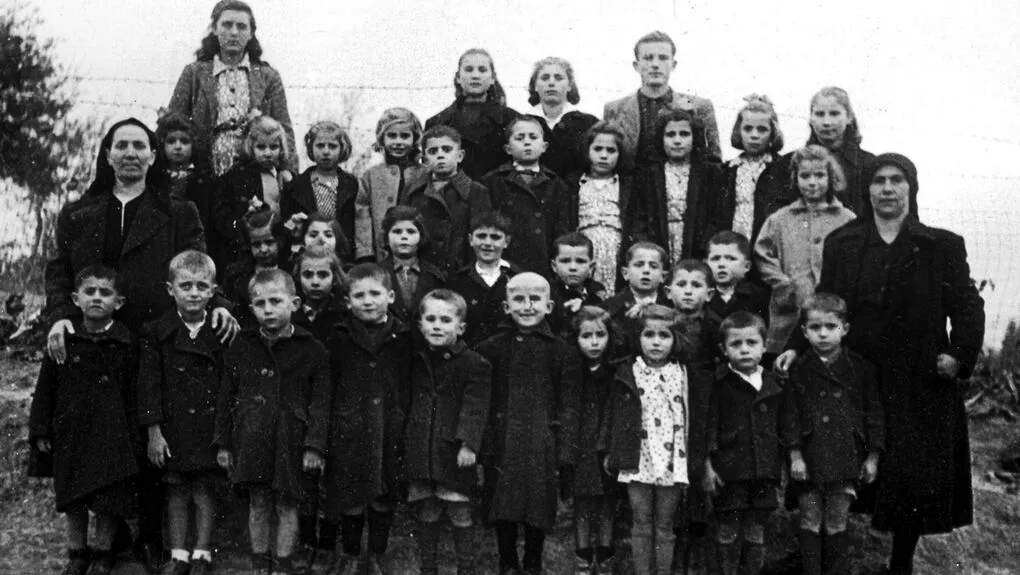 1949, Μπαλατονκένεσε (Balatonkenese), Ουγγαρία: Παιδιά από τo Τρίλοφο και το Μονόπυλο Καστοριάς. «Μάνες», η Αναστασία Κιατίπη και η Ασπασία Γέρου