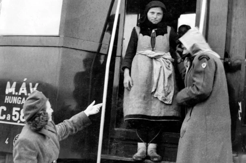 Από την Αλβανία φύγαμε με καράβι. Το πού πηγαίναμε δεν ήξερα. Την ημέρα ταξιδεύαμε στο αμπάρι του πλοίου. Επρεπε να μείνουμε σε ησυχία. Τη νύχτα μπορούσαμε να ανέβουμε στο κατάστρωμα όπου έβλεπα μερικές φορές να ρίχνουν πτώματα στο νερό. Το πώς βρεθήκαμε στην Ουγγαρία δεν ξέρω. Αυτό που θυμάμαι είναι ότι ο πρώτος μας σταθμός ήταν το Ζάμαρτι. Εκεί μάθαμε ότι ο πατέρας μου πέθανε. Τη ζωή του την έχασε στις τελευταίες μάχες. Αυτό με έκανε και συνεχίζει να με κάνει να κλαίω πολλές φορές.