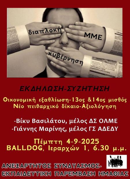 Ανεξάρτητος Συνδυασμός: Εκδήλωση – Συζήτηση με εκπροσώπους ΟΛΜΕ και ΑΔΕΔΥ, Βέροια «BallDog» Πέμπτη 4/9/25