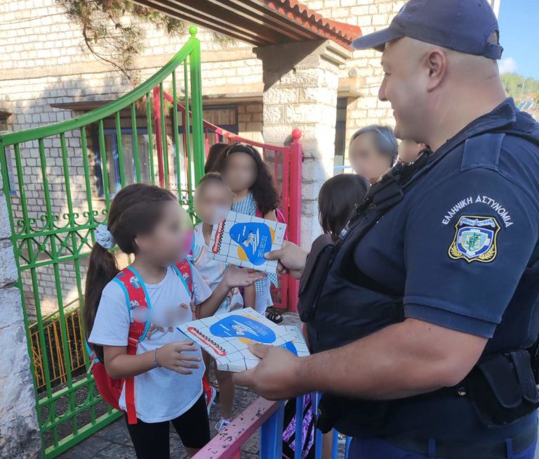 Διανομή ενημερωτικού υλικού από αστυνομικούς της Τροχαίας για την οδική ασφάλεια σε μαθητές σχολείων με την έναρξη της νέας σχολικής χρονιάς