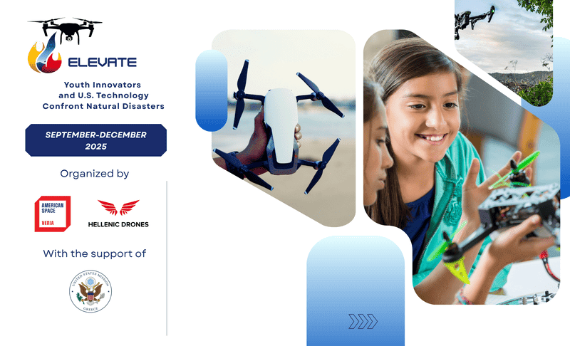 Το πρόγραμμα απευθύνεται σε μαθητές Γυμνασίου – Λυκείου και περιλαμβάνει εργαστήρια στις Αμερικανικές Γωνιές της Βέροιας, της Ξάνθης, της Θεσσαλονίκης και του Πειραιά, για την χρήση drones στην πρόληψη και αντιμετώπιση φυσικών καταστροφών. Το πρόγραμμα θα ολοκληρωθεί με την διεξαγωγή ενός Ηackathon (περισσότερες πληροφορίες και ημερομηνίες στην φόρμα εγγραφής).