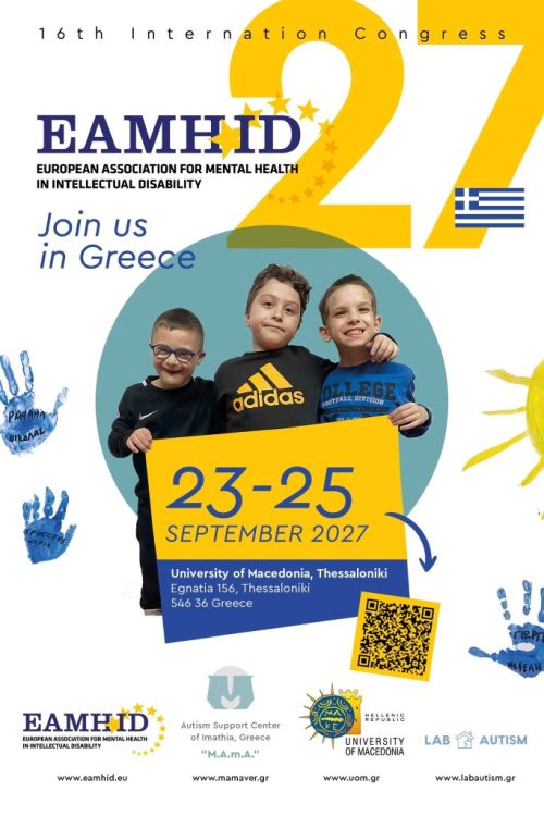 Η διοργάνωση του 16ου Διεθνούς Συνεδρίου της EAMHID θα περάσει το 2027 στη Θεσσαλονίκη, στο Πανεπιστήμιο Μακεδονίας. Το συνέδριο, με τίτλο «Towards 100% Social Equity and Participation in the AI Age», ( 100% Κοινωνική Ισότητα και Συμμετοχή στην Εποχή της Τεχνητής Νοημοσύνης )θα πραγματοποιηθεί από τις 23 έως τις 25 Σεπτεμβρίου 2027 και θα διοργανωθεί από την EAMHID, σε συνεργασία με το ΠΑΜΑΚ και το Laboratory of Autism – Developmental Spectrum Disorders and Behaviour Difficulties of the Human