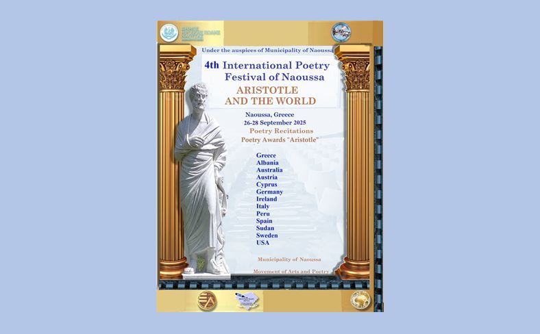 Με την συνδιοργάνωση και υπό την Αιγίδα του Δήμου Ηρωικής Πόλεως Νάουσας τελεί το 4ο Διεθνές Φεστιβάλ Ποίησης το οποίο διοργανώνει η «Κίνηση για τα Γράμματα και τις Τέχνες» από την Παρασκευή 26 Σεπτεμβρίου έως και την Κυριακή 28 Σεπτεμβρίου 2025.