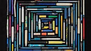 Πολύχρωμα στιλό, μαρκαδοράκια και καπάκια τοποθετήθηκαν τετραγωνισμένα…