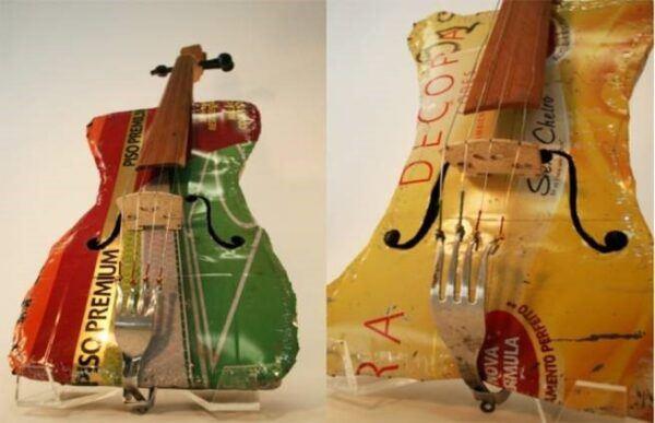 Όλα τα μουσικά όργανα αυτής της ιδιόρρυθμης παιδικής ορχήστρας δωματίου αποκλειστικά φτιαγμένα από ανακυκλώσιμα υλικά.