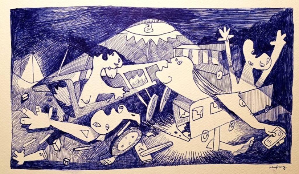 *Η εικόνα είναι έργο του Θεσσαλονικιού ζωγράφου, Γιώργου Κόφτη, με τίτλο ”Η προσβολή των νεκρών(after guernica). Για τα θύματα των Τεμπών”