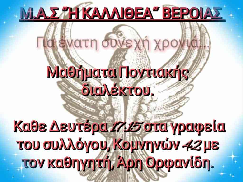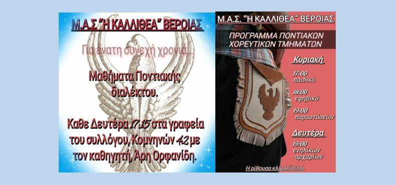 Βέροια, ΜΑΣ “Η Καλλιθέα”: Μαθήματα Ποντιακής Διαλέκτου & Πρόγραμμα Ποντιακών Χορών