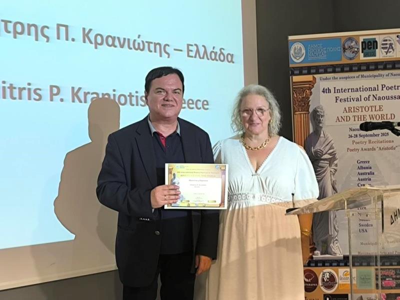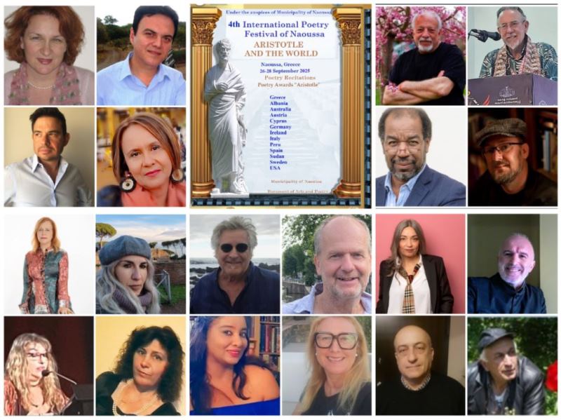 Naousa, a city steeped in history and culture, became once again the meeting point of poetic voices from every corner of the globe. From 26th – 28th of September 2025, the 4th International Poetry Festival of Naousa with the title “Aristotle and the World” unfolded its vibrant program, under the direction of Xanthi Hondrou-Hill, poet, translator and founder of the festival and in collaboration with internationally acclaimed Greek poet and president of the International Scientific Advisory Board of the festival Dimitris P. Kraniotis.