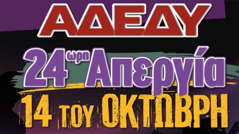 Η Εκτελεστική Επιτροπή της Α.Δ.Ε.Δ.Υ., αποφάσισε την κήρυξη 24ωρης Πανελλαδικής Απεργίας για την Τρίτη, 14 Οκτωβρίου 2025, ημέρα συζήτησης στην Ολομέλεια της Βουλής του αντεργατικού νομοσχεδίου, που θεσμοθετεί τη 13ωρη εργασία, μετατρέποντας τον εργαζόμενο του 21ου αιώνα σε εργάτη χωρίς δικαιώματα και ζωή.