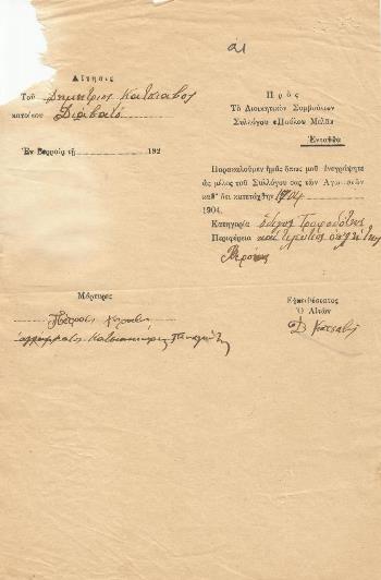 Κάθε αίτηση εγγραφής στον σύλλογο έχει διαστάσεις 0,195 μ. Χ 0,295 μ., ήταν προτυπωμένη με κενά τα οποία συμπλήρωνε ο αιτών. Οι αγωνιστές (ή οι συγγενείς προαποβιωσάντων) συμπλήρωναν στο μεν αριστερό ήμισυ της αιτήσεως το ονοματεπώνυμο (ορισμένοι και το πατρώνυμό τους), τον τόπο κατοικίας τους, τον τόπο και την ημερομηνία υποβολής της αίτησης εγγραφής, επικολλούσαν φωτογραφία (στις υπ’ αρ. 2, 3 αιτήσεις λείπουν οι φωτογραφίες), κάτω από την οποία υπήρχε θέση για τις υπογραφές (υποχρεωτικά) δύο μαρτύρων, ότι ήταν Μακεδονομάχος. Στο δεξιό ήμισυ της αιτήσεως συμπλήρωναν το έτος κατάταξής τους στον Μακεδονικό Αγώνα, την κατηγορία των υπηρεσιών που πρόσφεραν, την περιφέρεια δράσης τους και έθεταν την υπογραφή τους. Όταν η αίτηση γινόταν δεκτή από το διοικητικό συμβούλιο του Συλλόγου, εκδίδονταν το ατομικό βιβλιάριο κάθε αγωνιστή.