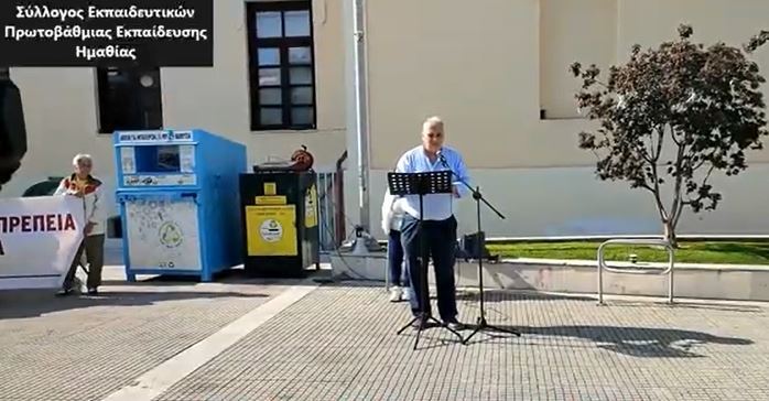 Ως Πρόεδρος του Διοικητικού Συμβουλίου του Συλλόγου Εκπαιδευτικών Πρωτοβάθμιας Εκπαίδευσης Ημαθίας χαιρετίζω τη σημερινή απεργιακή μας συγκέντρωση. Βρισκόμαστε ξανά στο δρόμο του αγώνα κι απέναντί μας έχουμε μια πολιτική που τσακίζει τη ζωή και την αξιοπρέπειά μας. Απεργούμε και διαδηλώνουμε ενάντια στη νέα αντεργατική επίθεση της κυβέρνησης της ΝΔ που φέρνει το 13ωρο. Απεργούμε και διαδηλώνουμε ενάντια στη συνέχιση της πολιτικής της εκμετάλλευσης, της φτώχειας και της εργασιακής σκλαβιάς του 21ου αιώνα.