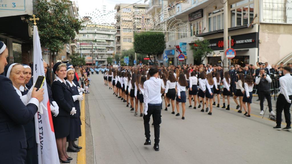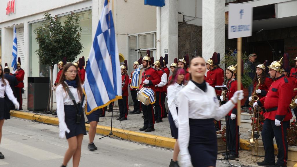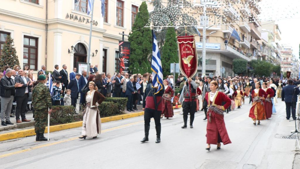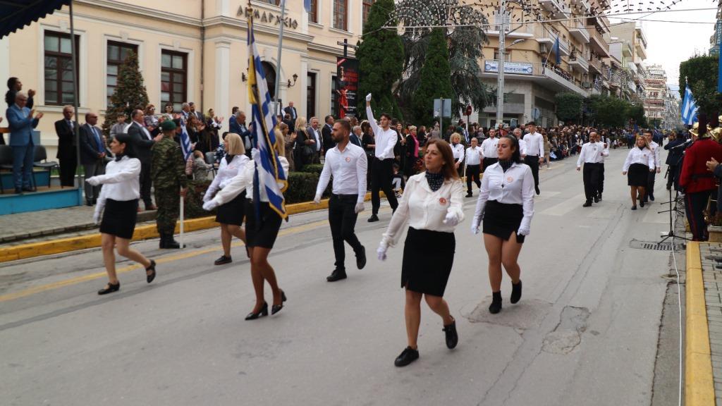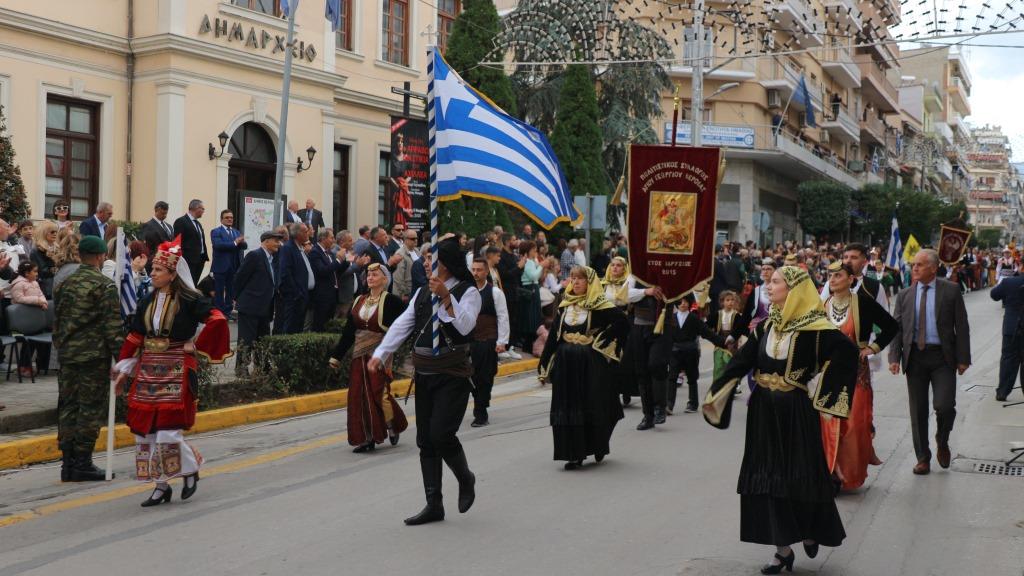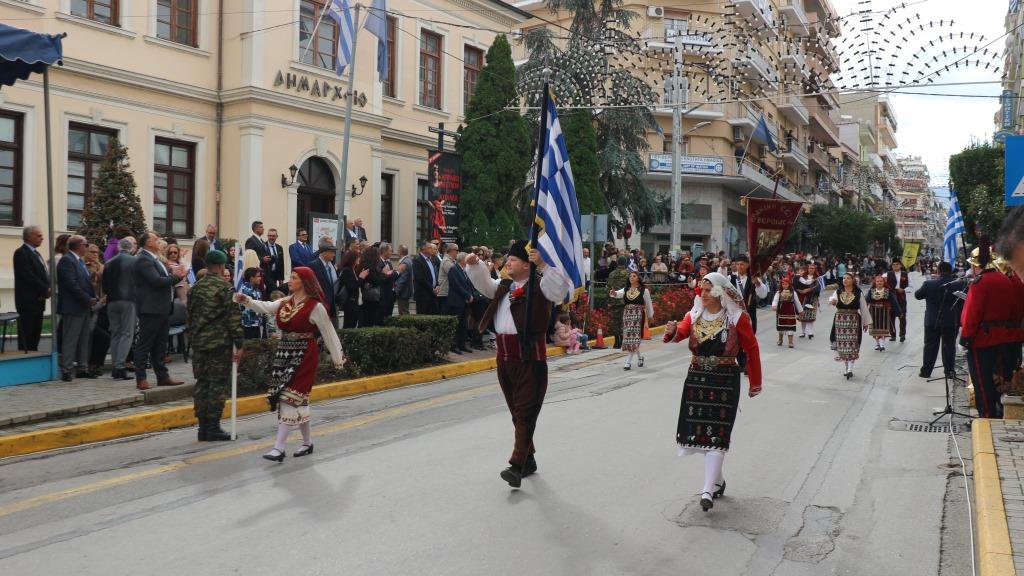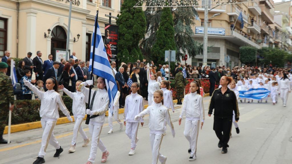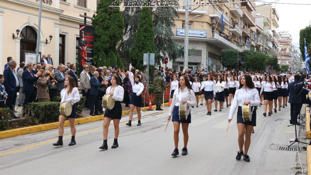 Μετά τη δοξολογία και την κατάθεση στεφάνων στην Πλατεία Ωρολογίου, ξεκίνησε η παρέλαση, με πρώτους τους συλλόγους και στη συνέχεια τους μαθητές και τον στρατό.