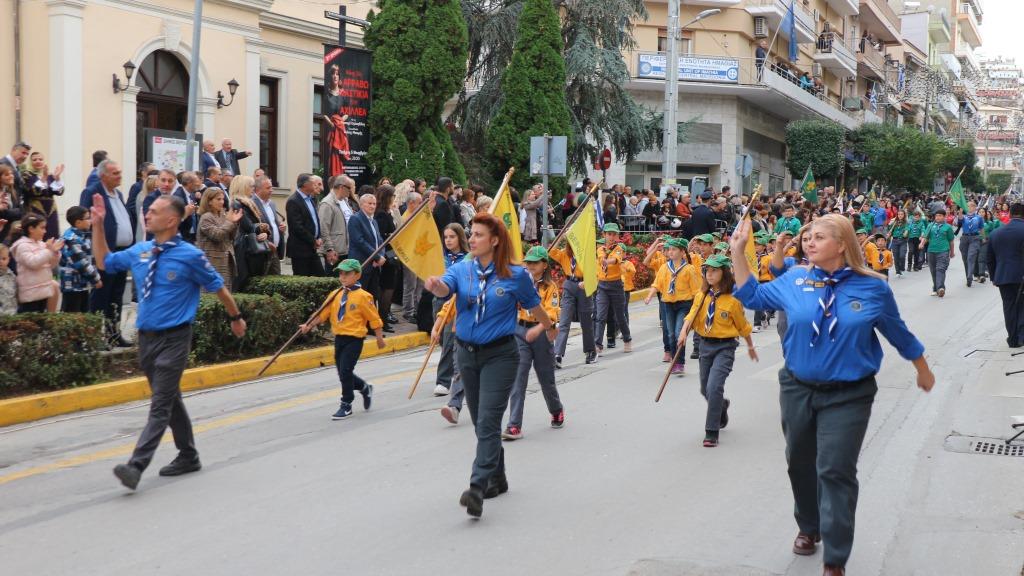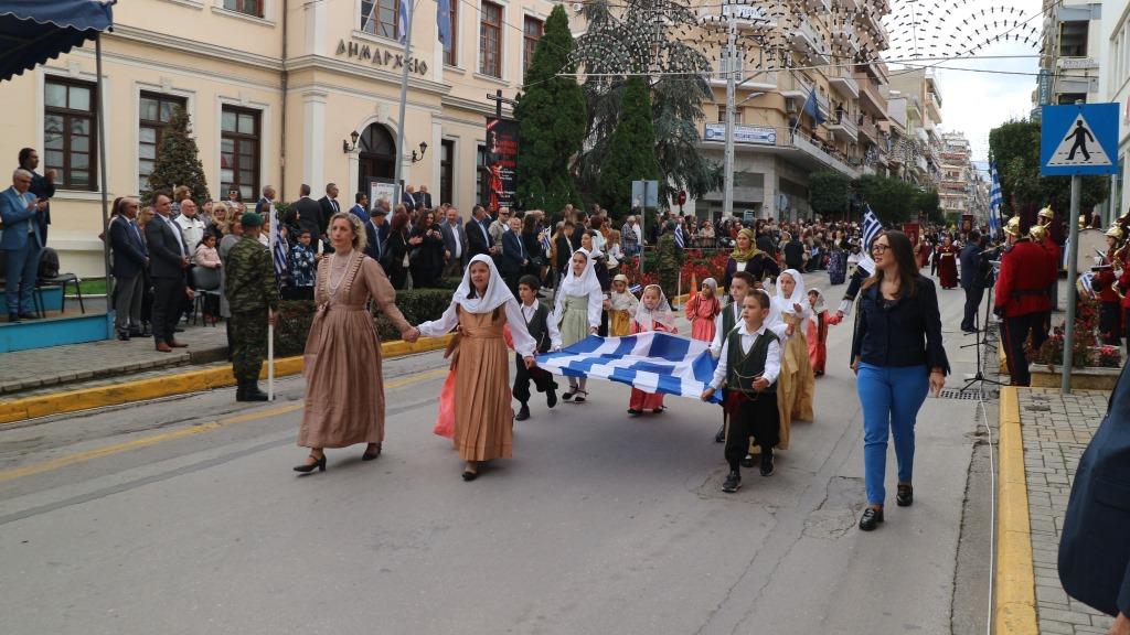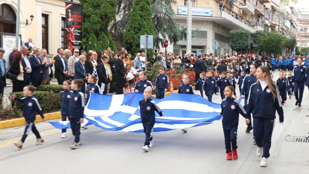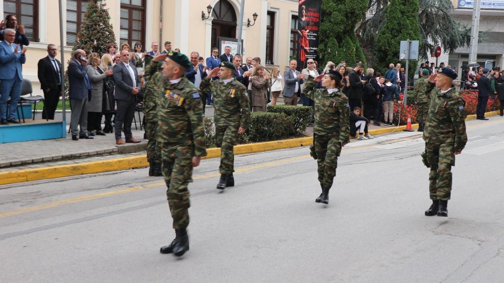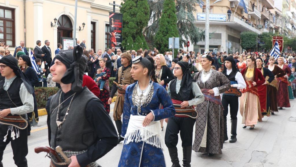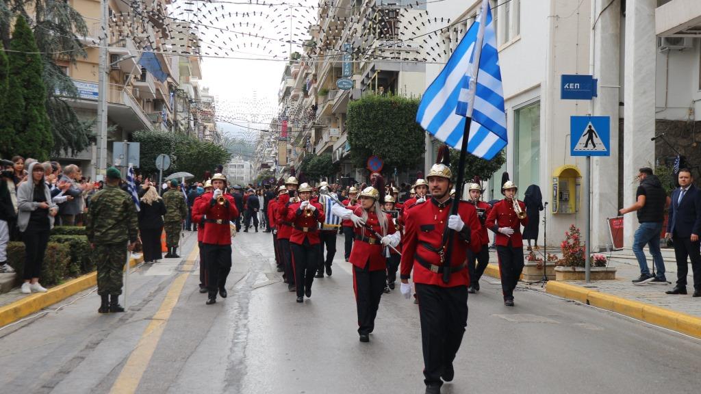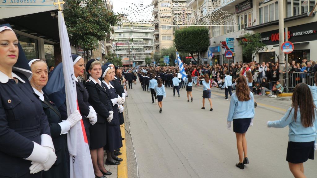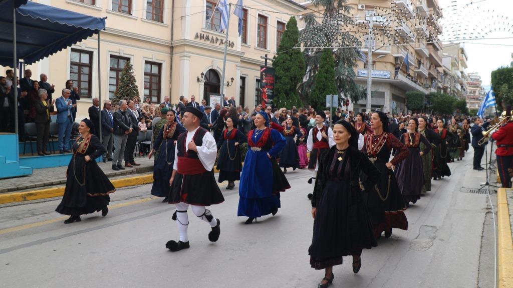 Μετά τη δοξολογία και την κατάθεση στεφάνων στην Πλατεία Ωρολογίου, ξεκίνησε η παρέλαση, με πρώτους τους συλλόγους και στη συνέχεια τους μαθητές και τον στρατό.