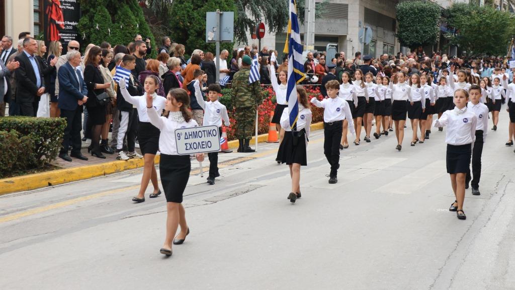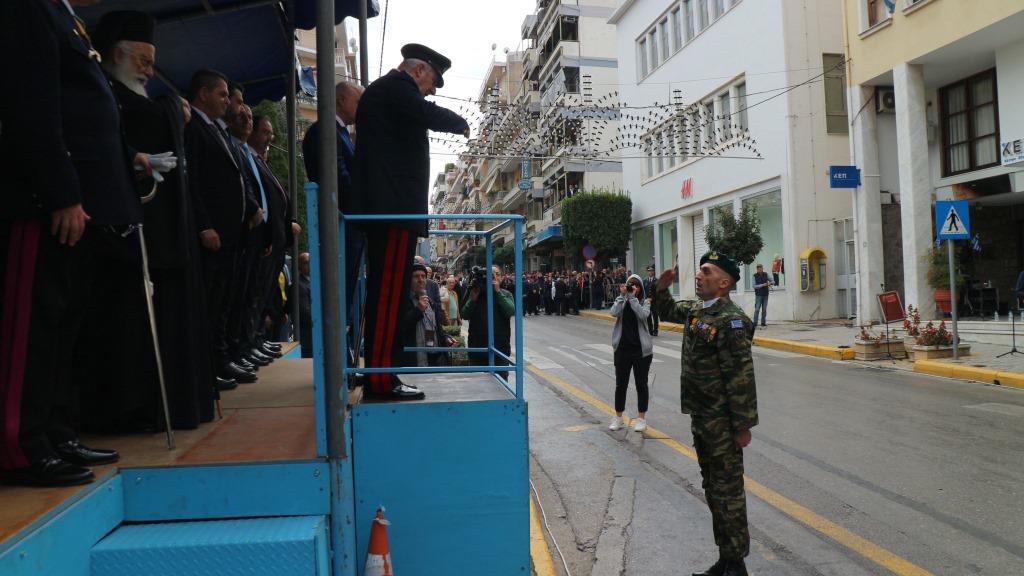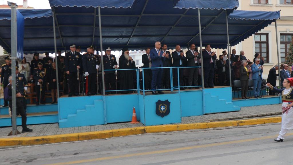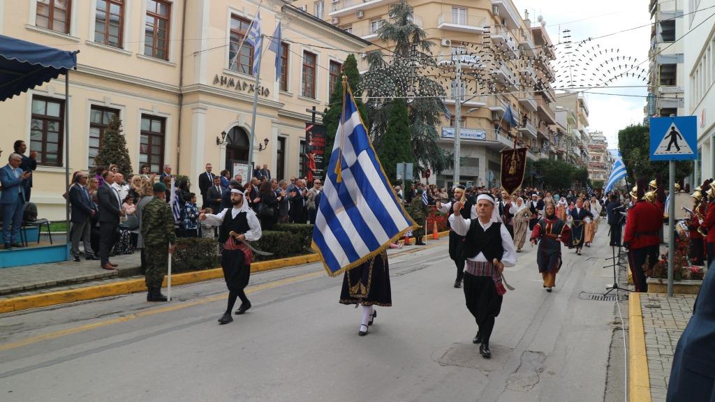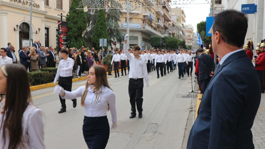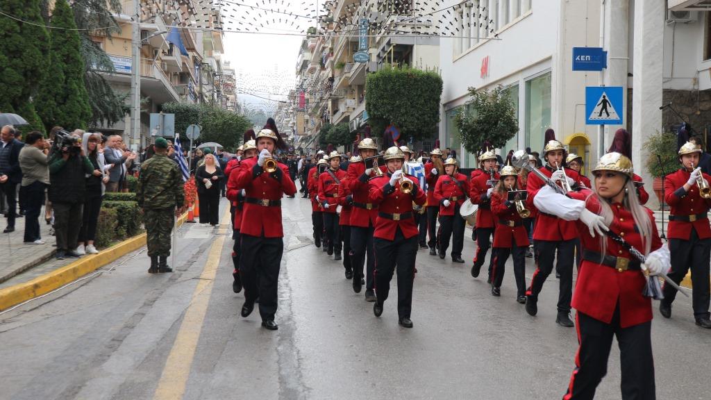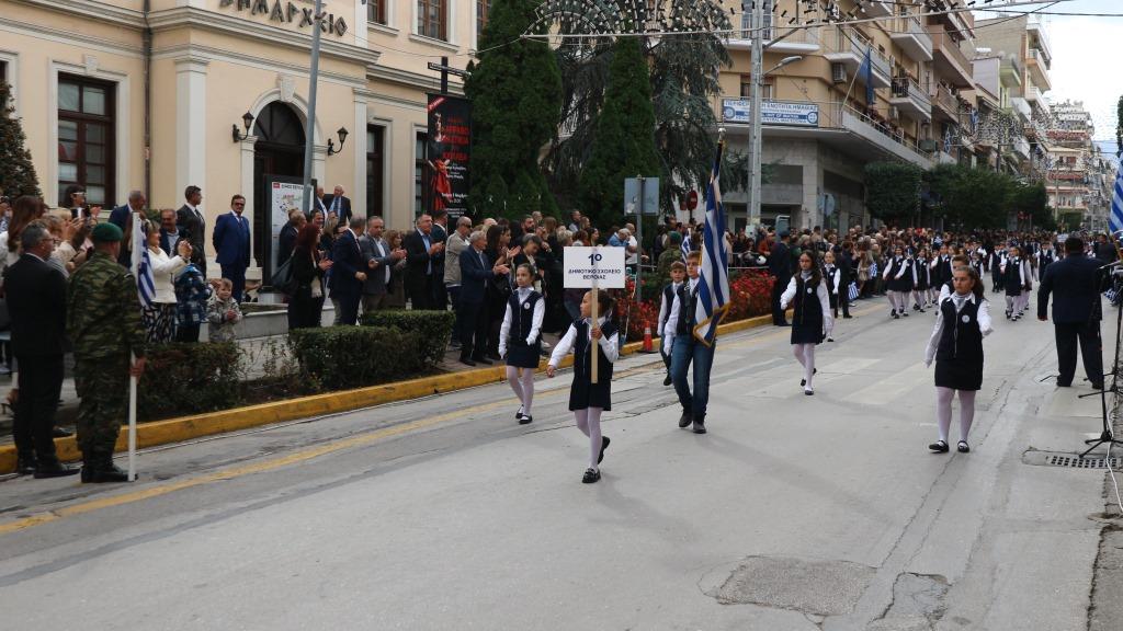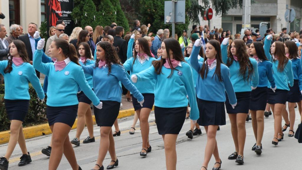 Μετά τη δοξολογία και την κατάθεση στεφάνων στην Πλατεία Ωρολογίου, ξεκίνησε η παρέλαση, με πρώτους τους συλλόγους και στη συνέχεια τους μαθητές και τον στρατό.
