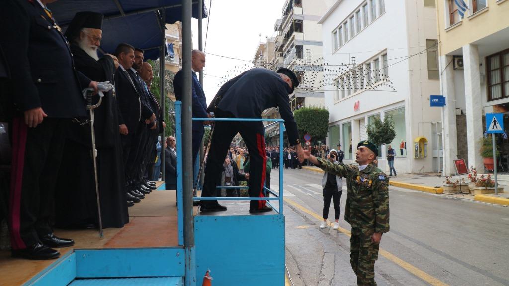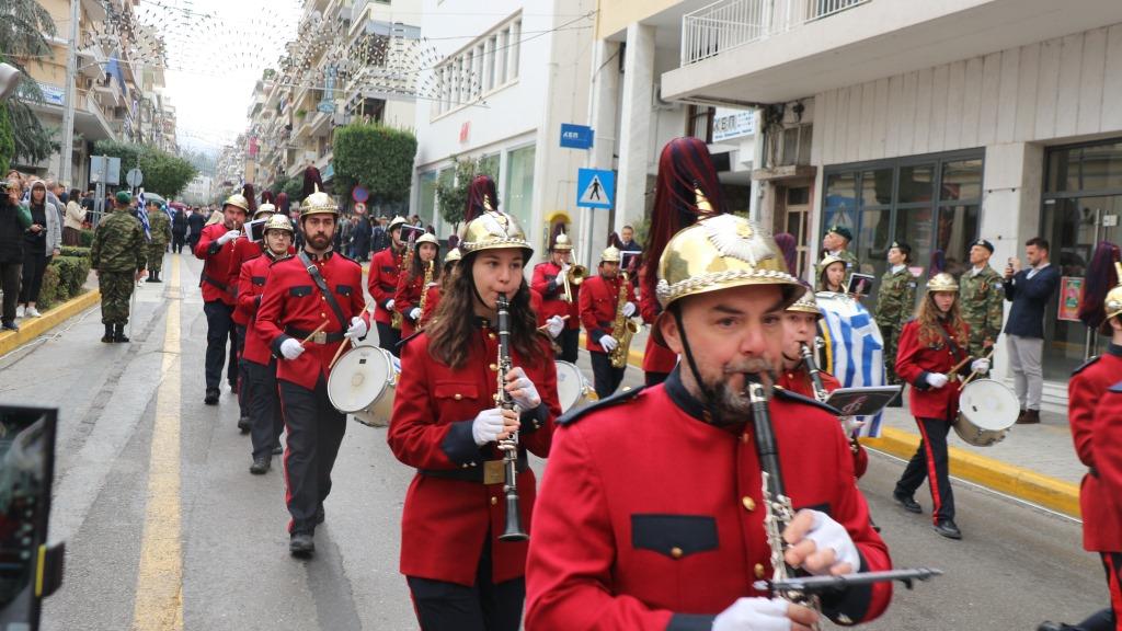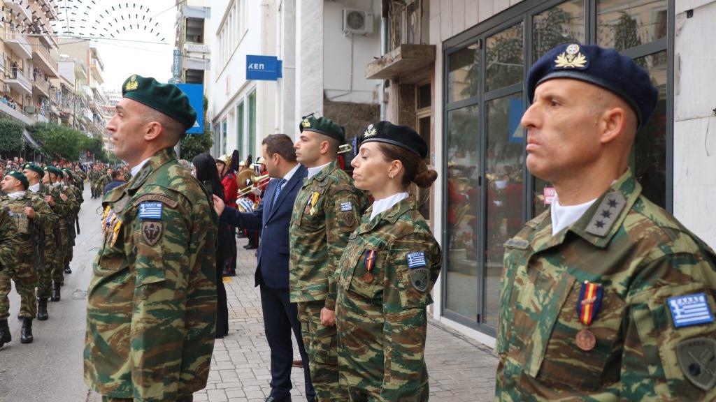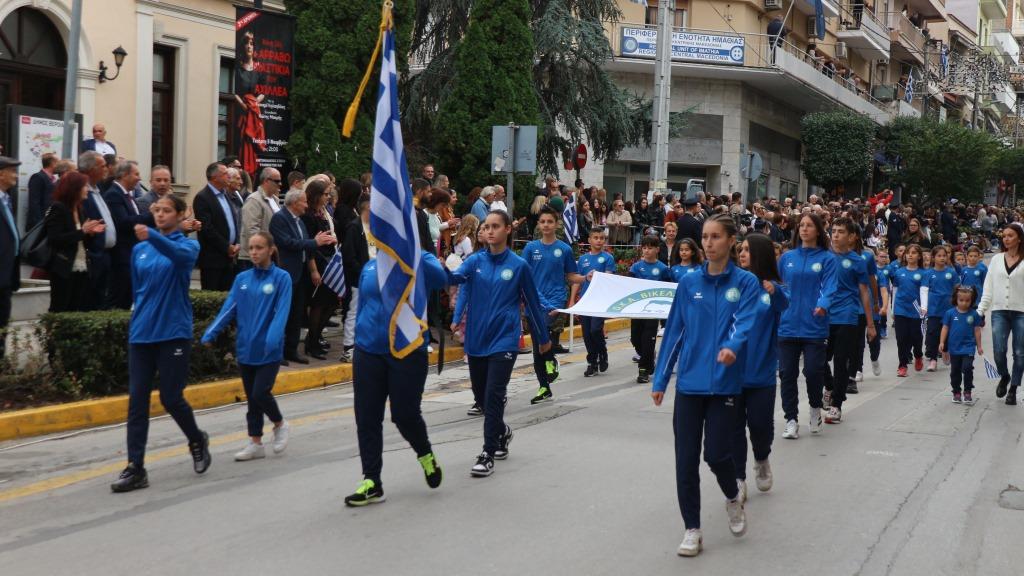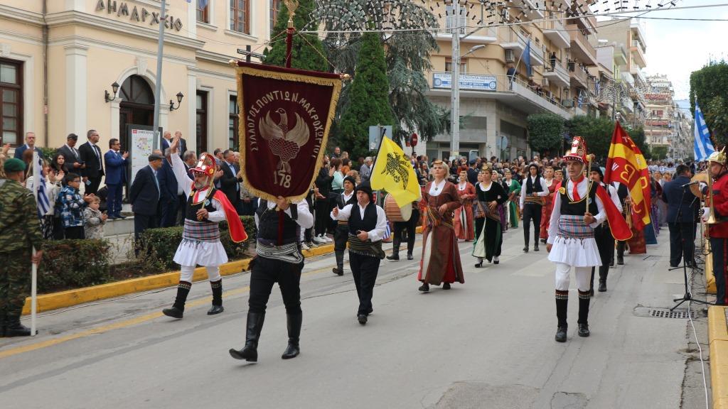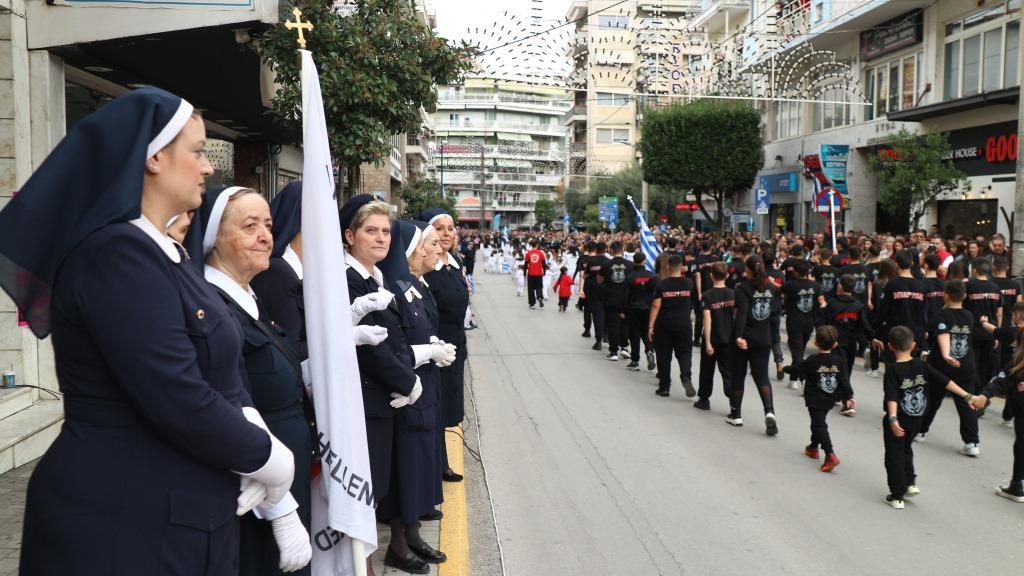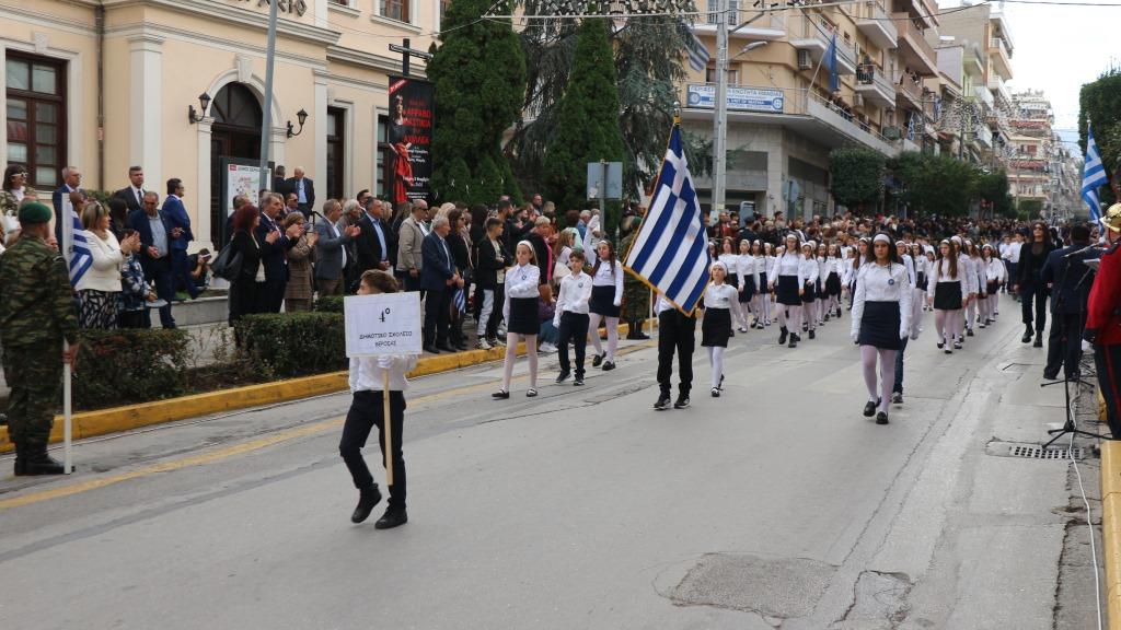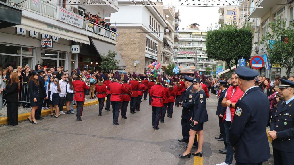 Μετά τη δοξολογία και την κατάθεση στεφάνων στην Πλατεία Ωρολογίου, ξεκίνησε η παρέλαση, με πρώτους τους συλλόγους και στη συνέχεια τους μαθητές και τον στρατό.