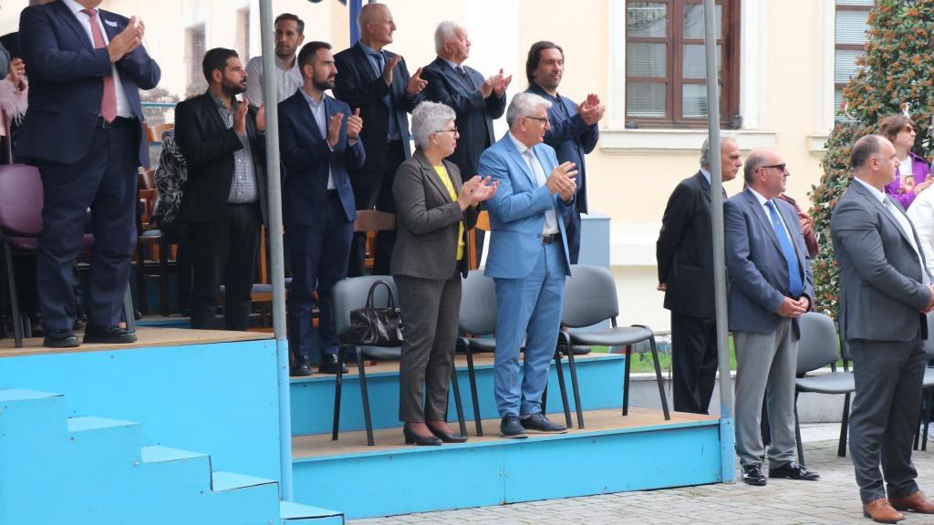 Στην εξέδρα ο Μητροπολίτης, ο Δήμαρχος και οι Αρχές, με παρόντες τους βουλευτές του Νομού και εκπρόσωπο της Κυβέρνησης τον Υφυπουργό Λάζαρο Τσαβδαρίδη.