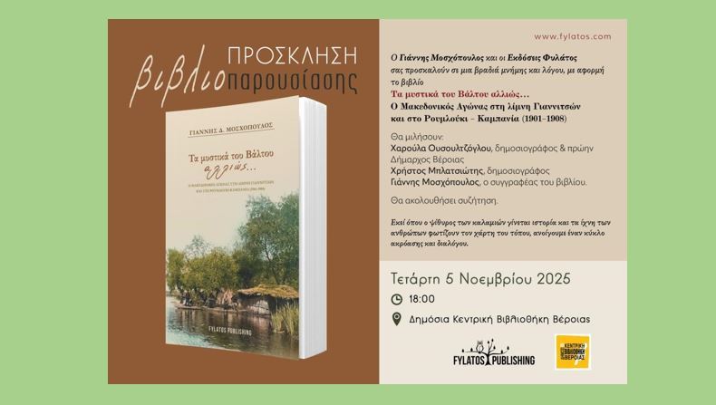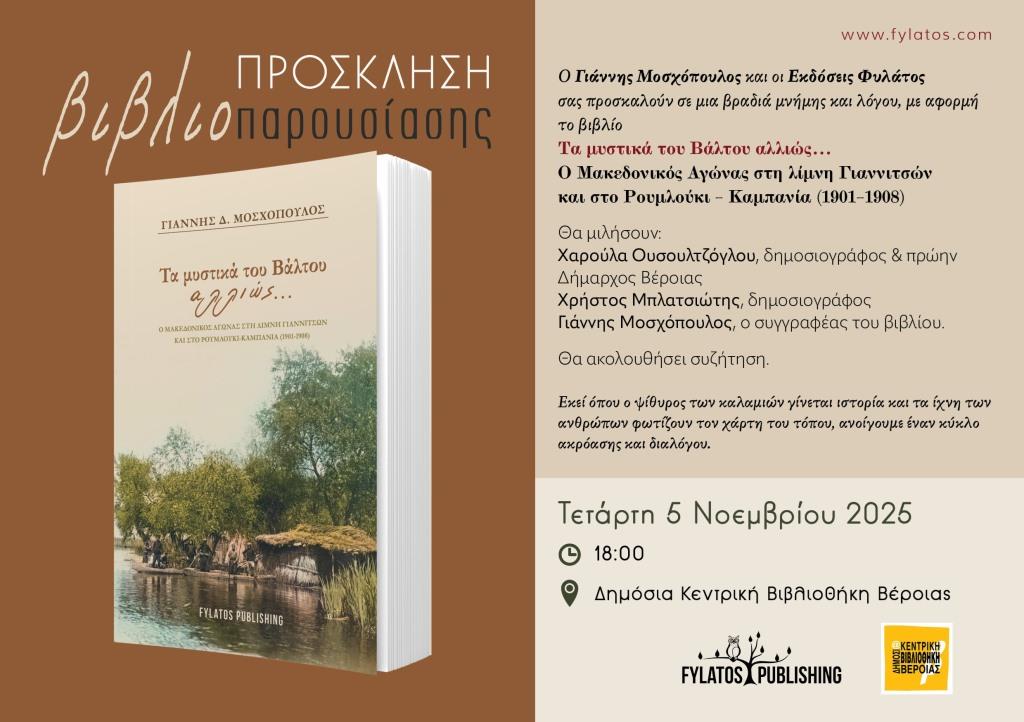 Παρουσίαση βιβλίου: Γιάννης Μοσχόπουλος “Τα μυστικά του Βάλτου αλλιώς” / Βέροια, Τετάρτη 5 Νοεμβρίου