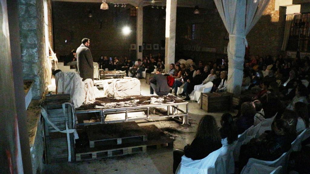 Βέροια, Εκκοκκιστήριο Ιδεών. Χώρος φωλιάς του πνεύματος, όχι, όμως, θεατρική σκηνή. Αν η προηγούμενη παράσταση για ενήλικες της Ομάδας Novan Theater Group, που ψυχή της είναι ο Πέτρος Μαλιάρας, δόθηκε στη μεγάλη αυλή του Εκκοκκιστηρίου, χθες γεννήθηκαν ερωτήματα για το πώς θα ανέβει στο εσωτερικό του ένα έργο χωρίς την απαραίτητη σκηνή. Τα γεγονότα διέψευσαν τις όποιες επιφυλάξεις. Το θεατρικό δαιμόνιο του Πέτρου βρήκε λύσεις. Και ο κόσμος, (γεμάτος ο χώρος στις 9 ακριβώς), περίμενε. Το πώς είναι το ασυνήθιστο. Περίμενε χωρίς να ακούγεται ψίθυρος μέχρι τις 9.20, που άρχισε η παράσταση. Εκλεπτυσμένο κοινό ή αυθυποβολή, με τη σιγουριά πως θα υπάρξει κάτι διαφορετικό;