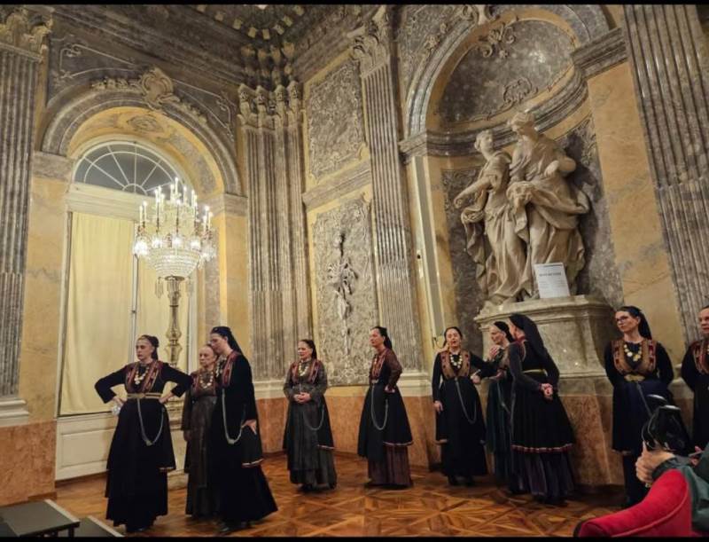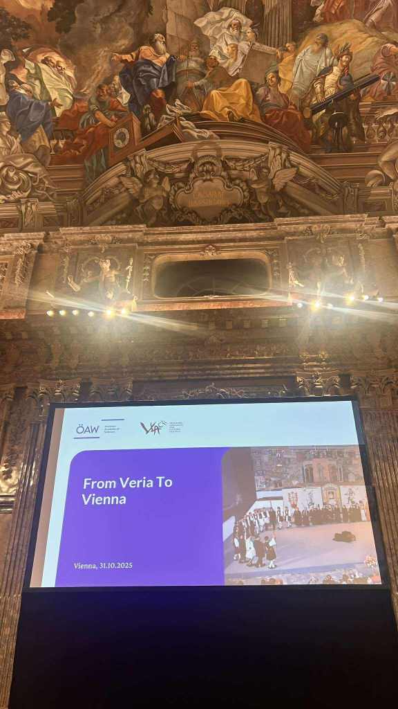 Το Συνέδριο έκλεισε, την Παρασκευή (31/10/2025) με μια ανεπανάληπτη μουσικοχορευτική παράσταση από το Σύλλογο Βλάχων Βέροιας. Στην υψηλής αισθητικής αρχιτεκτονικά αίθουσα της Ακαδημίας Επιστημών της Βιέννης, σε στιλ μπαρόκ, με μεγαλοπρεπή γλυπτά και άψογη διακόσμηση, τρία νέα παιδιά από το Σύλλογο Βλάχων Βέροιας, ο Κώστας Μέλιος, ο Απόστολος Καραμίχος και η Τάνια Πίσκου απέδωσαν βλάχικα τραγούδια στην κατάμεστη αίθουσα και ανέδειξαν ότι υπάρχουν συνεχιστές της βλαχικής παράδοσης. Είχε προηγηθεί σύντομη αλλά πολύ περιεκτική παρουσίαση της Λαογραφίας των Βλάχων στην Ελλάδα από τον Thede Kahl με προβολή σκηνών από τα Βλαχοχώρια της Πίνδου. Στη συνέχεια, η χορευτική ομάδα της αποστολής, με τις αυθεντικές φορεσιές, παρουσίασε ένα πλούσιο πολιτιστικό πρόγραμμα με τραγούδια από τη Βέροια, την Πίνδο και τους Γραμμουστιάνους των Σερρών και του Πάικου. Η συγκίνηση στην αίθουσα ήταν διάχυτη, ο ενθουσιασμός απερίγραπτος, η εμπειρία ξεχωριστή. Όταν τελείωσε το πρόγραμμα, οι χορευτές συμπαρέσυραν τους παρισταμένους σε ένα χορευτικό ξεφάντωμα και η αίθουσα της Ακαδημίας γέμισε με παραδοσιακές μελωδίες και τραγούδια από την κομπανία και τη φωνή του Φώτη Καραβιώτη και θύμισε χορούς στα βλάχικα χωριά της Ελλάδας. Ήταν συγκλονιστικό αυτό που ζήσαμε. Δεν περιγράφεται!