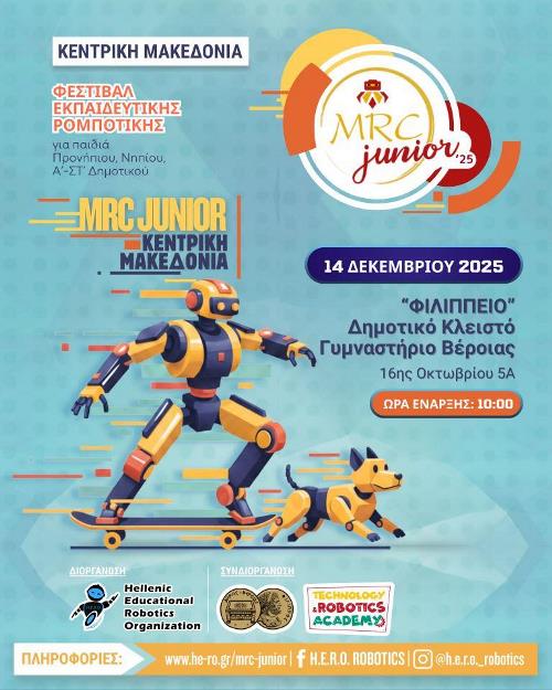 Ανταποκρινόμενος στις σύγχρονες εκπαιδευτικές προκλήσεις όπου η τεχνολογία και η καινοτομία βρίσκονται στο επίκεντρο, ο Δήμος Βέροιας σε συνεργασία με τον Ελληνικό Οργανισμό Εκπαιδευτικής Ρομποτικής (Hellenic Educational Robotics Organization) και την Technology and Robotics Academy (ΔΙΚΤΥΩΣΗ) που εδρεύει στη Βέροια, διοργανώνουν το 1ο Φεστιβάλ Εκπαιδευτικής και Αθλητικής Ρομποτικής που θα πραγματοποιηθεί στις 14 Δεκεμβρίου 2025 στο Φιλίππειο Δημοτικό κλειστό Γυμναστήριο Βέροιας.