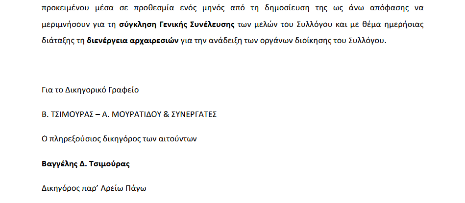 Από το Δικηγορικό Γραφείο Β. Τσιμούρας – Α. Μουρατίδου & Συνεργάτες πήραμε το Δελτίο Τύπου που ακολουθεί: