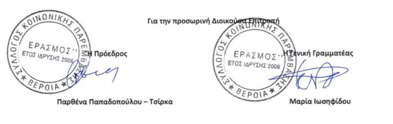Διορισμός προσωρινής διοίκησης στο Σύλλογο Κοινωνικής Παρέμβασης «Έρασμος», με απόφαση του Πρωτοδικείου Βέροιας