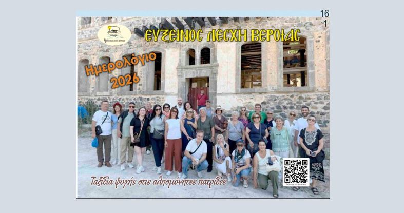 Το περασμένο Σάββατο, 15 Νοεμβρίου, παρουσιάστηκε στο Πολιτιστικό Κέντρο της Ευξείνου Λέσχης Βέροιας το ημερολόγιο του 2026.