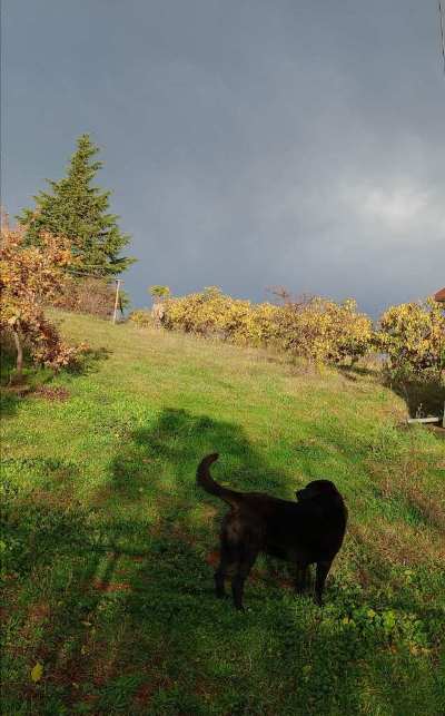Αφήσαμε το αυτοκίνητο , πολλή λάσπη ο χωματόδρομος προς το κτήμα, στη στροφή αριστερά πάνω στο λιβάδι που φέρνει και τα άλογα του ο γείτονας και το καλοκαίρι ξεροσταλιάζουν διψασμένα στον ήλιο.