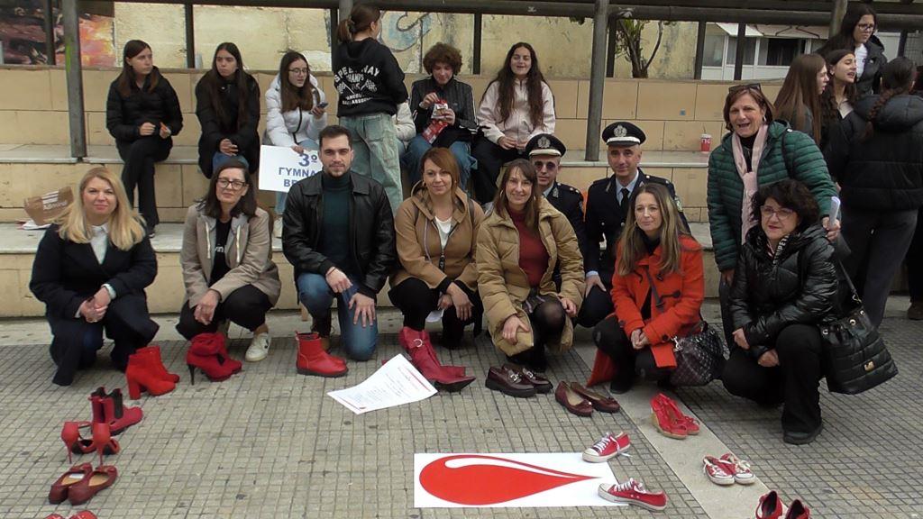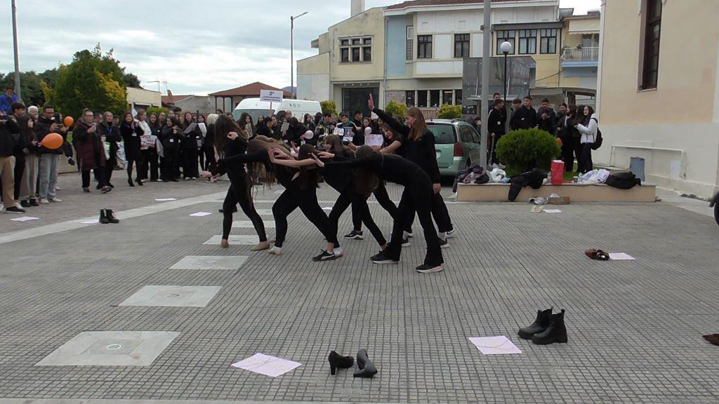 Στο επίκεντρο των δράσεων βρέθηκε ένα συμβολικό εικαστικό δρώμενο, όπου γυναικεία παπούτσια τοποθετήθηκαν σε κυκλική διάταξη, ως μια σιωπηλή αλλά δυναμική καταγγελία του φαινομένου των γυναικοκτονιών. Παράλληλα, εκατοντάδες μαθητές, κρατώντας πορτοκαλί μπαλόνια (το διεθνές χρώμα κατά της έμφυλης βίας), συμμετείχαν στη δημιουργία ενός «δέντρου της ισότητας». Ο πίνακας ζωγραφικής, φιλοτεχνημένος από τον εικαστικό Δημήτρη Μαυροκεφαλίδη, γέμισε με αυτοκόλλητα σε σχήμα φύλλων, πάνω στα οποία οι μαθητές είχαν γράψει τα δικά τους μηνύματα κατά της βίας και υπέρ της ισότητας.