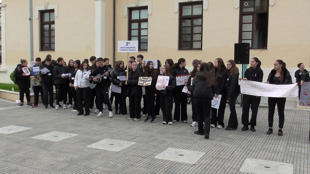 Την ατμόσφαιρα εμπλούτισαν με εντυπωσιακό τρόπο το Γυμνάσιο Μακροχωρίου και το 2ο Γυμνάσιο Βέροιας, και το 3ο Γυμνάσιο, παρουσιάζοντας καλλιτεχνικά μουσικο-χορευτικά δρώμενα, τα οποία προσέδωσαν ιδιαίτερη συναισθηματική βαρύτητα στην ημέρα. Μαθητές και εκπαιδευτικοί διάβασαν, επίσης, θεματικά ποιήματα και αποφθέγματα, ολοκληρώνοντας μια εκδήλωση που απέδειξε ότι η νέα γενιά είναι έτοιμη να αγωνιστεί για έναν κόσμο χωρίς βία.