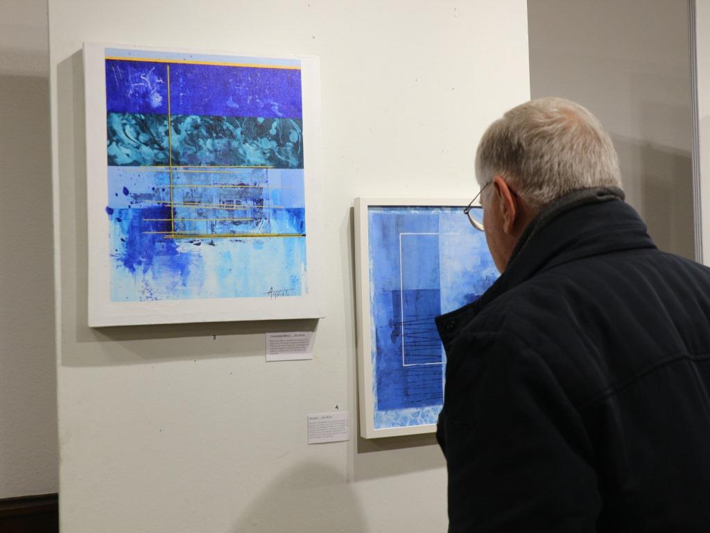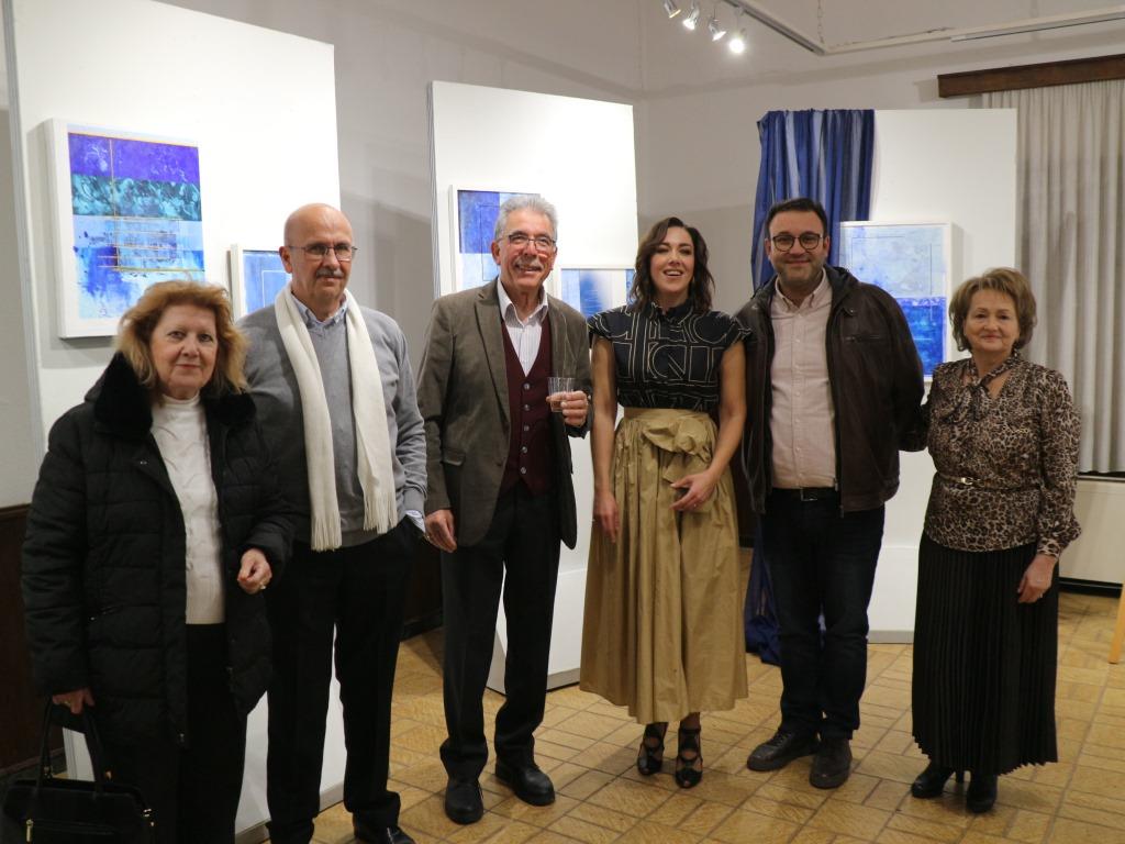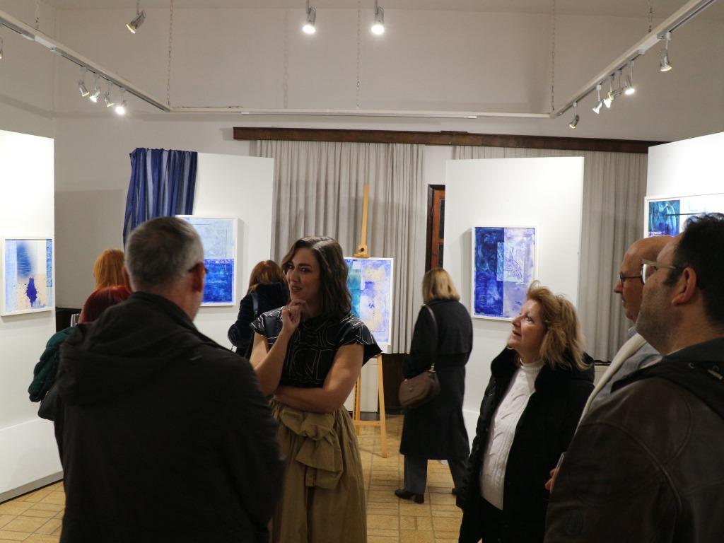 Στο Φουαγιέ της Αντωνιάδειας Στέγης Γραμμάτων και Τεχνών στη Βέροια εγκαινιάστηκε απόψε η έκθεση ζωγραφικής της Εύας Αμνιώτη “Η γεωμετρία του μπλε”. Τίτλος από τη φύση του ελκυστικός για τον αποδέκτη της έκθεσης.