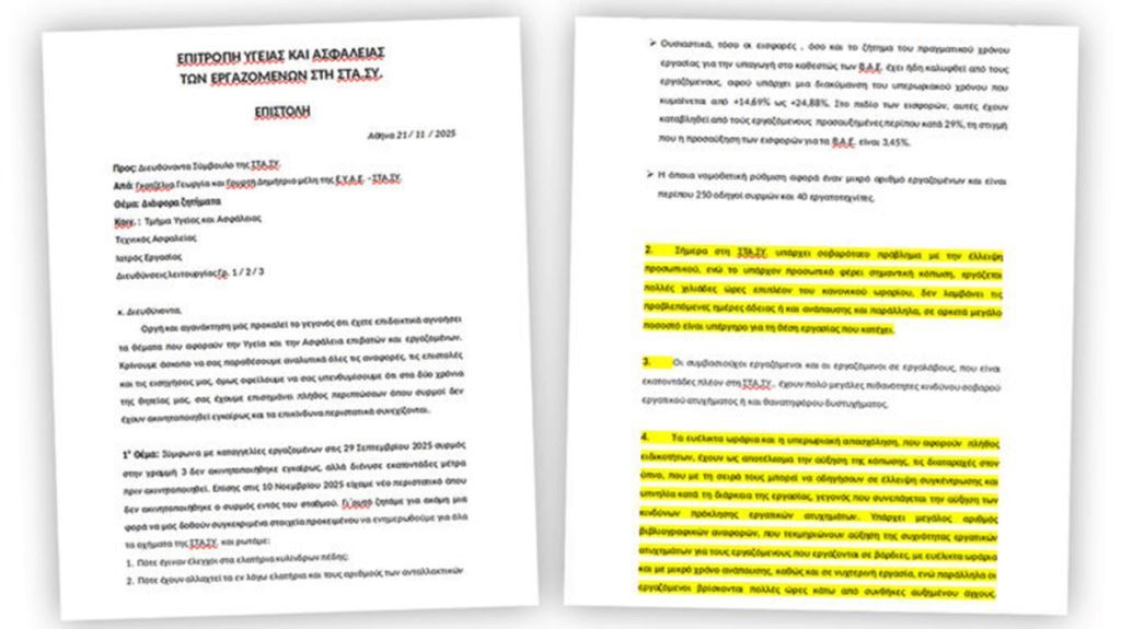 Στην επιστολή γινόταν αναφορά στα ευέλικτα ωράρια και τις υπερωρίες που, όπως χαρακτηριστικά ανέφεραν, αυξάνουν την πιθανότητα εργατικών ατυχημάτων: