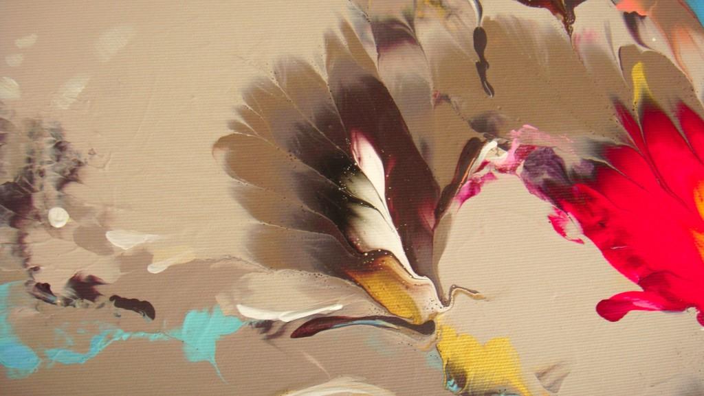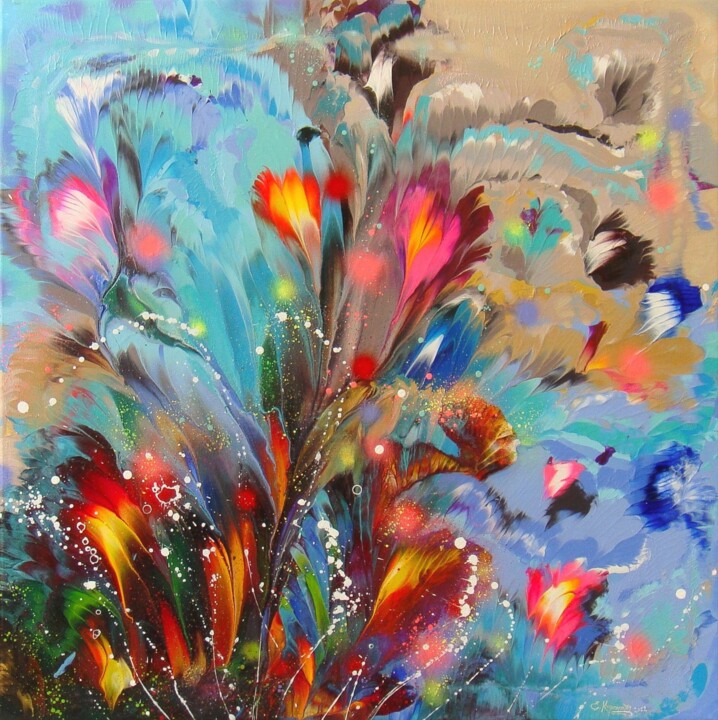 Ακόμη κι όταν ζωγραφίζει όχι λουλούδια αλλά κύματα, όχι κύματα αλλά δέντρα και θαλασσινά χωριά, και τότε μένει πιστή στην αφαίρεση αλλά πάντα με στόχο την επικοινωνία με τον αποδέκτη του έργου της και την πρόκληση μιας ευφορίας που έρχεται με απόλυτη φυσικότητα ως αποτέλεσμα.