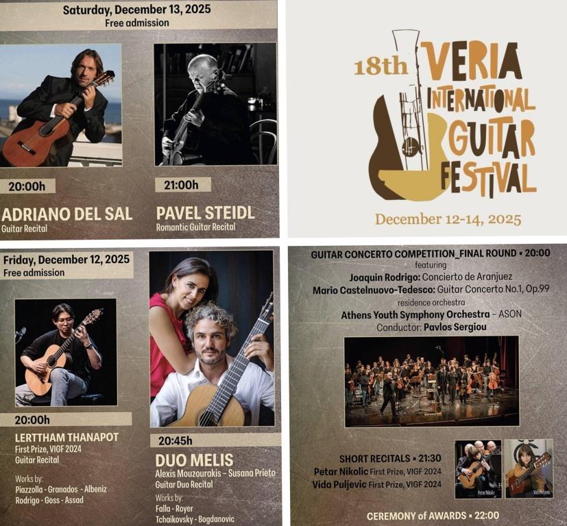ΚΕΠΑ Δήμου Βέροιας: 18ο Διεθνές Φεστιβάλ Κιθάρας Βέροιας 12, 13 & 14 Δεκεμβρίου 2025