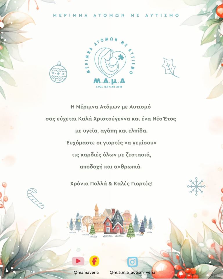 Ευχόμαστε οι γιορτές να γεμίσουν τις καρδιές όλων με ζεστασιά, αποδοχή και ανθρωπιά.