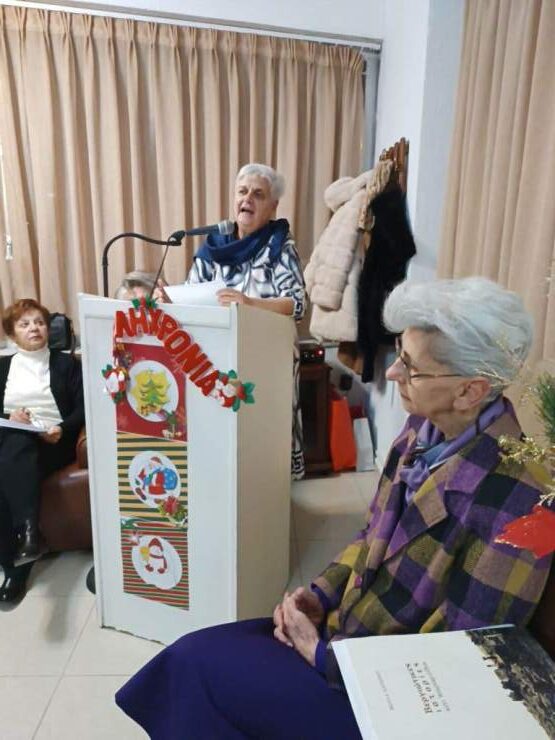 Τους παρευρισκόμενους καλωσόρισε η κ. Καραμπεΐδου Μάγδα. Στη συνέχεια η Πρόεδρος του Συνδέσμου κ. Σοφρόνωφ – Ταμπάκη Ιωάννα αναφέρθηκε στο σύγχρονο περιεχόμενο των Χριστουγέννων και αφηγήθηκε έθιμα και ήθη των ημερών που κρατούν από την παλιά βεροιώτικη παράδοση.