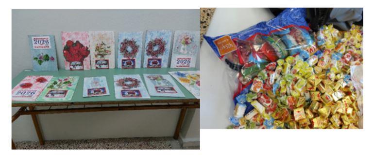 Μπαζάρ στις 15/12 με χειροποίητα χριστουγεννιάτικα στολίδια και ημερολόγια και την δύναμη της αλληλεγγύης από τα παιδιά του Ομίλου κατασκευών και χειροτεχνίας του σχολείου και συντονίστρια την Καλογερίδου Σοφία. Με τα έσοδα από το μπαζάρ αγοράστηκαν σοκολάτες και καραμέλες για 70 παιδιά που διαμένουν στην δομή φιλοξενίας στην Αγία Βαρβάρα.