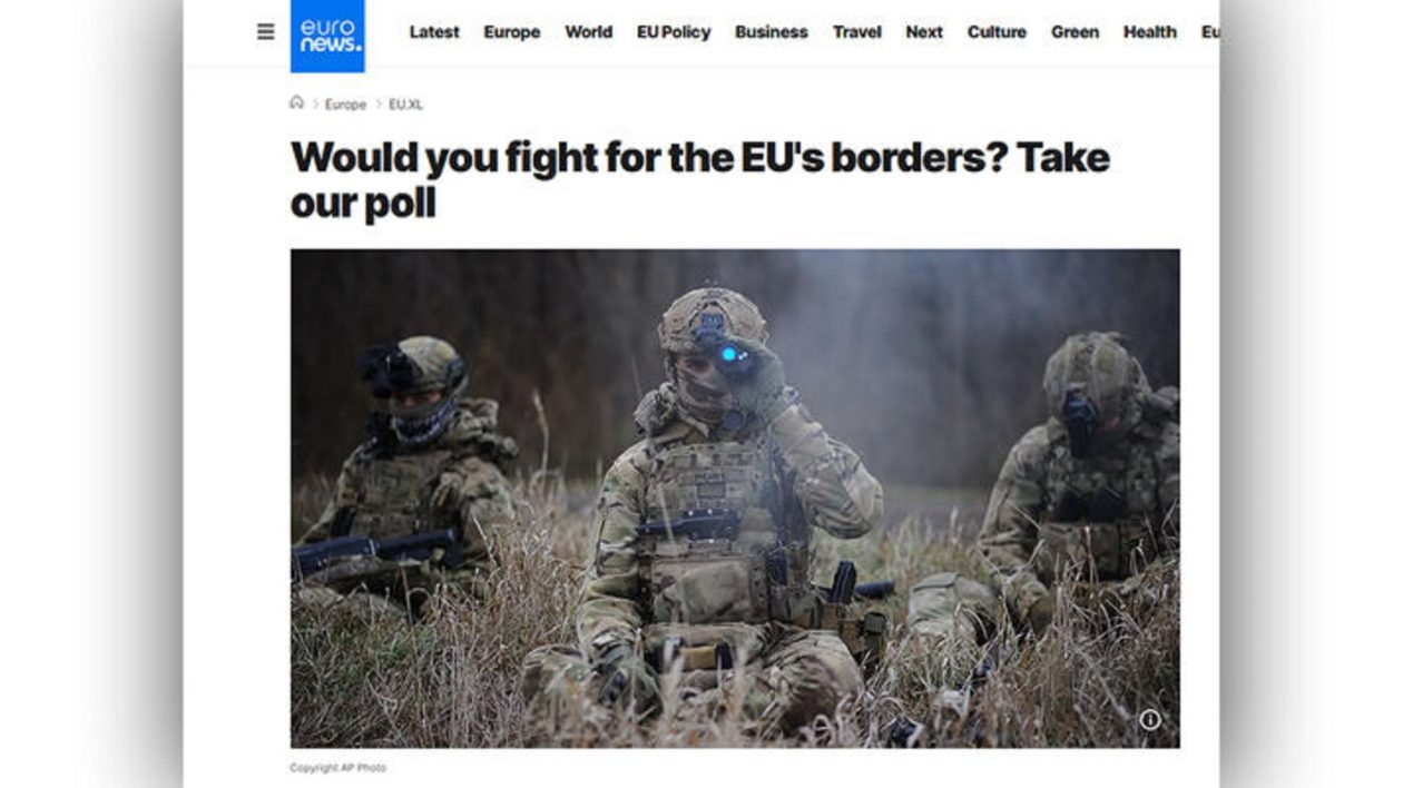 Το ειδησεογραφικό πρακτορείο Euronews αποφάσισε να “κλείσει την πόρτα” του 2025 με ένα αδιανόητο και ανατριχιαστικό δημοψήφισμα, στο οποίο το κεντρικό ερώτημα είναι: «Θα πολεμούσατε για τα σύνορα της ΕΕ;»!